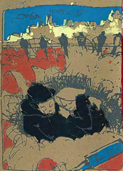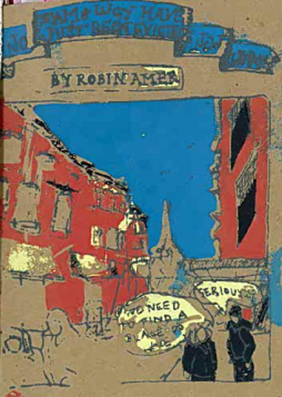 My contribution was this little silk screened comic about a young couple who gets kicked out of their home and goes searching through the downtown for a new place to live. If you were around in 2004 (or if you’ve listened to Reconstructing Providence) you know that this was a bad time for artists. Dozens of my friends had recently been evicted from their spaces under inhumane and possibly illegal circumstances; having a stable and affordable place to live was definitely on my mind.